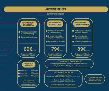 Une salle de sport qui regroupe de nombreuses disciplines du fitness et de la musculation.