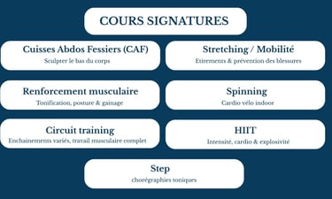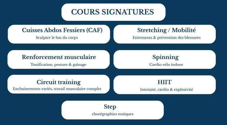 Nous proposons 2 catégories de cours collectifs. Chacun peut y trouver sa place en fonction de ses besoins et de ses objectifs.
