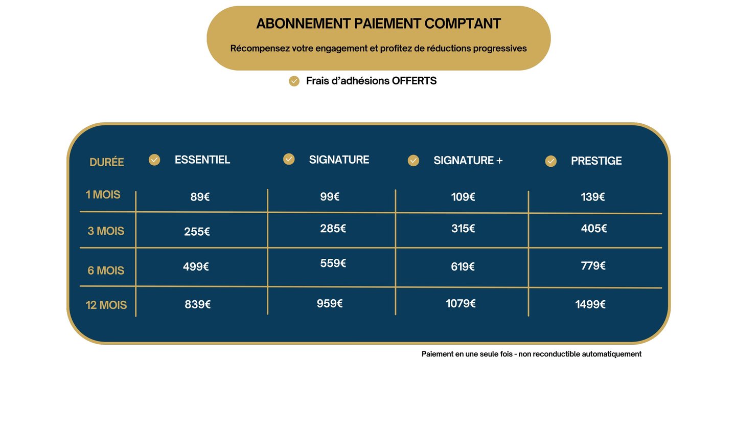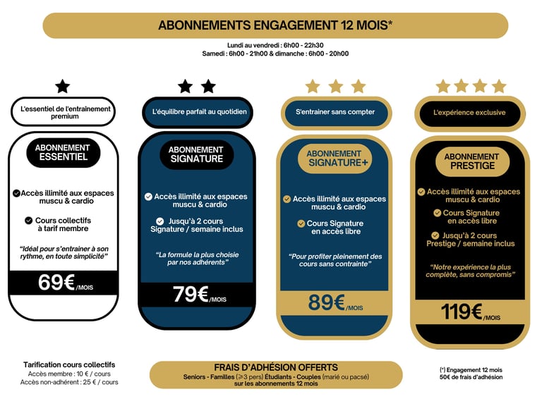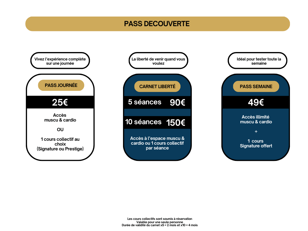 Que vous souhaitez vous entraîner librement, participer aux cours collectifs ou bénéficier d'une expérience exclusive, nos abonnements ont été conçus pour s'adapter à vos besoins