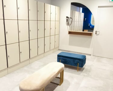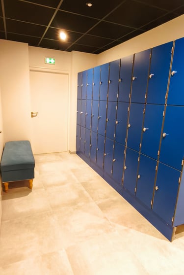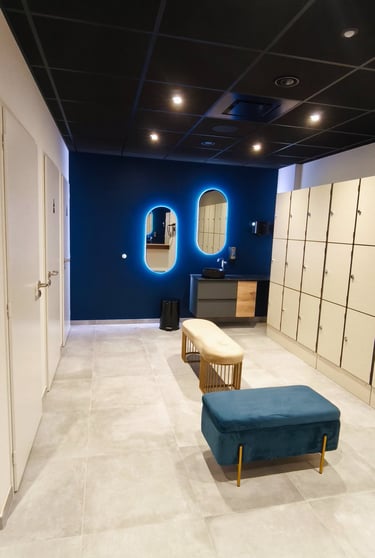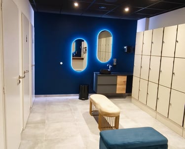 Des vestiaires avec tout le nécessaire pour votre confort : douches individuelles, sèche-cheveux, casiers...